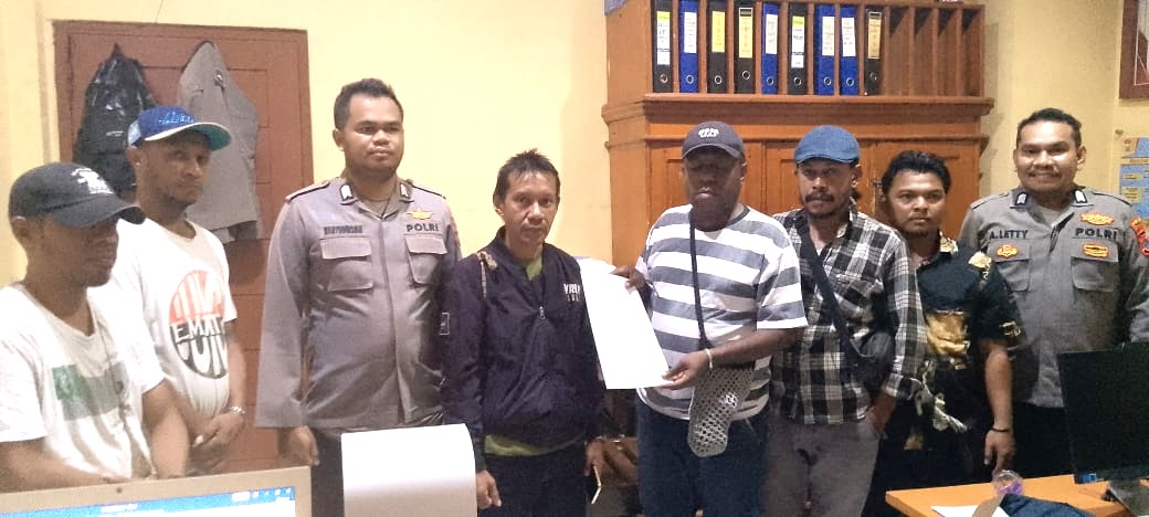 Di dampingi sejumlah wartawan, kedua wartawan yang mendapat perlakuan tidak pantas dari Pelaksana tugas Sekretaris Dewan Kabupaten Raja Ampat Noak Komboy tersebut mendatangi polres setempat, Sabtu 10 Mei 2025.