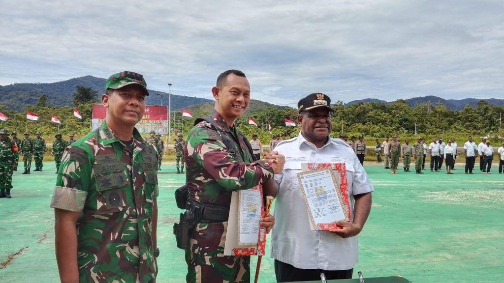 “Saya mengajak seluruh elemen masyarakat untuk bekerja bersama membangun daerah, guna mengatasi berbagai masalah dan tantangan di bidang teknologi, ekonomi dan sosial budaya. Untuk itulah selama TMMD ini para Prajurit TNI hadir di tengah-tengah masyarakat, menyebarkan inspirasi, semangat gotong-royong dan energi positif untuk maju bersama mencapai keunggulan SDM dan kesejahteraan rakyat,” Kata Yeskiel Yesnath.