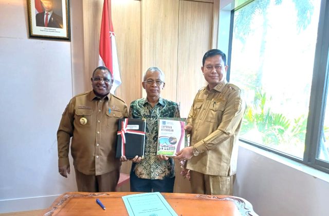 Hadir dalam penyerahan LKPD PLT Kepala BPKAD Erik Thenu dan Kepala Inspektorat Kabupaten Maybrat.