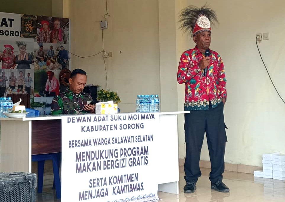 Ketua Dewan Adat Moi Maya, Amirudin Umalelen, dalam sambutannya menegaskan dukungan penuh dari masyarakat adat suku Moi Maya terhadap program MBG yang telah dilaksanakan hingga kedaerah-daerah, menurut Amirudin, program MBG akan dapat dirasakan manfaatnya dan dapat diketahui dampaknya bukan dalam waktu yang singkat, karena anak-anak sekolah penerima program MBG akan semakin disiplin dan fokus dalam belajar.