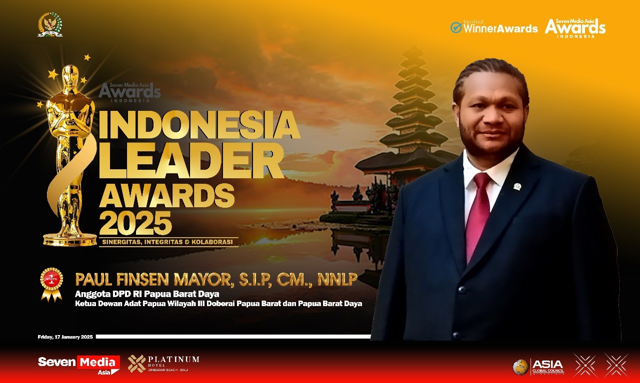DENPASAR, mediabetewnews.com – Ketua Dewan Adat Papua Wilayah III Doberay yang juga adalah Senator asal Provinsi Papua Barat Daya, Paul Finsen Mayor (PFM) menerima penghargaan dari 7 (tujuh) Media Asia karena dalam kepemimpinannya mampu membuat perubahan dan inovasi dalam mewujudkan Indonesia Baru.