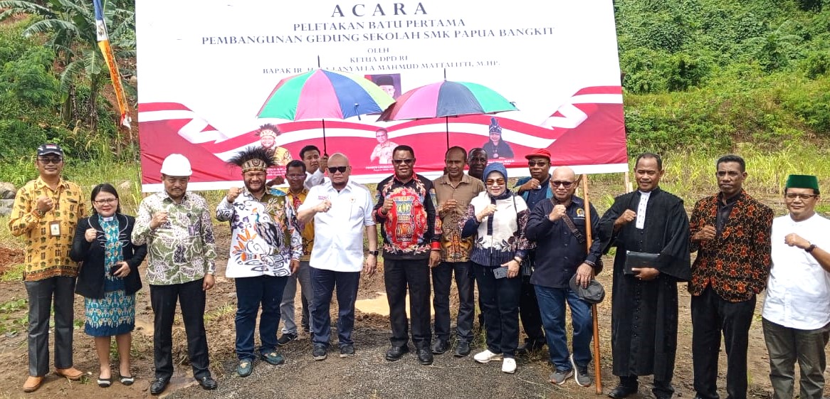 SORONG, – Dalam kunjungan kerjanya ke Kota Sorong Provinsi Papua Barat Daya, Ketua Dewan Perwakilan Daerah Republik Indonesia (DPD RI), AA LaNyalla M Mataliti diundang untuk meletakan baru pertama tanda dimulainya pembangunan Sekolah Menengah Kejuruan (SMK) Papua Bangkit dan Sekolah Bola Kaki Belanda di Kelurahan Saoka, Distrik Maladum-Mes, Kota Sorong Provinsi Papua Barat Daya.