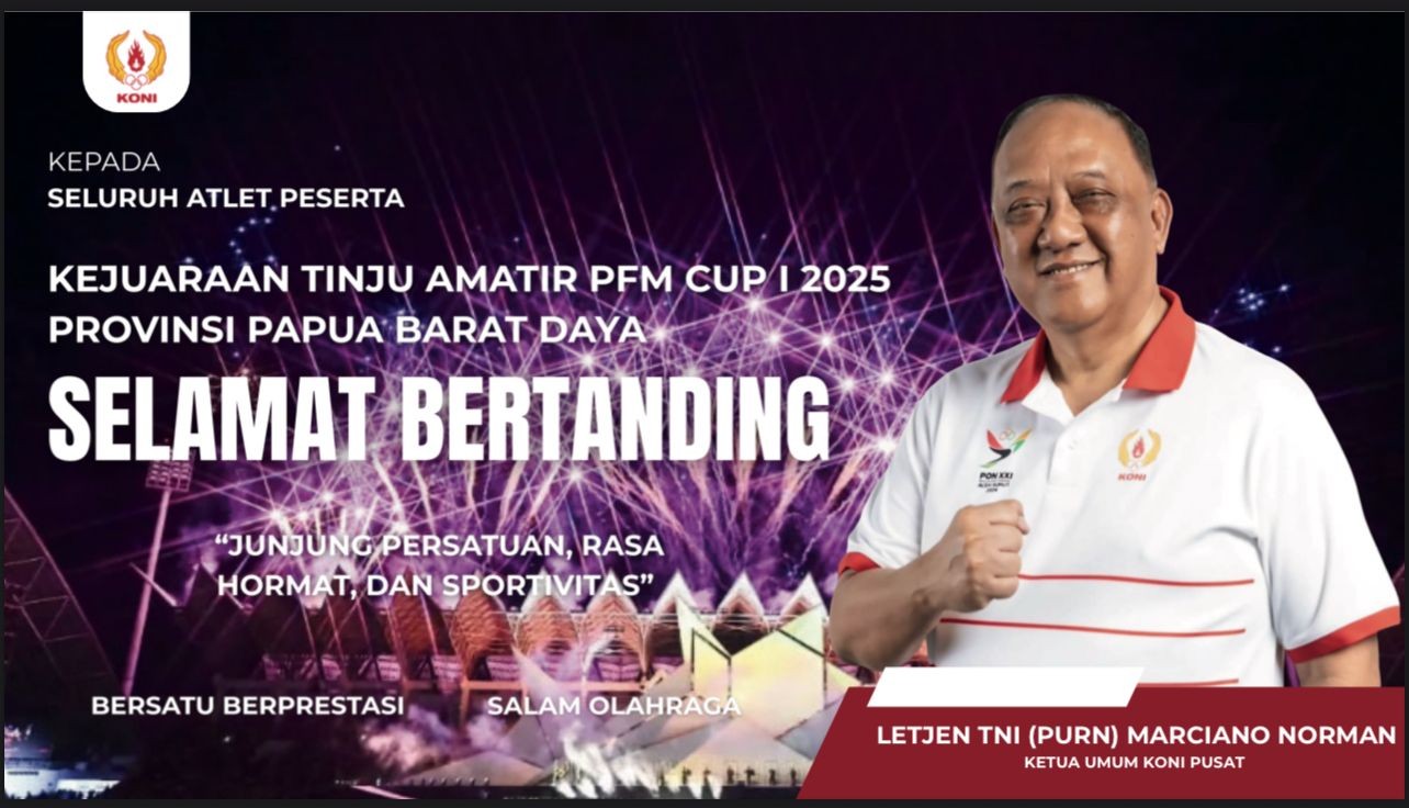 JAKARTA – Ketua Umum Komite Olahraga Nasional Indonesia (KONI) Pusat Letjen TNI (Purn) Marciano Norman mengapresiasi penyelenggaraan Kejuaraan Tinju Amatir PFM Cup I di Kota Sorong, Papua Barat Daya.