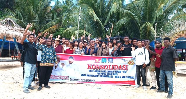 SORONG, – Mahasiswa kota dan kabupaten Sorong yang tergabung dalam sayap Tim Relawan Elang Sahabat ELKAM siap memback-up dan memenangkan pasangan Gubernur dan Wakil Gubernur Provinsi Papua Barat Daya Nomor Urut 3, Elisa Kambu dan Ahmad Nausrau hingga menjabat sebagai gubernur dan wakil gubernur Provinsi Papua Barat Daya yang pertama. Demikian dikatakan Ketua Sayap Tim Relawan Elang Sahabat ELKAM, Veronika Mobalen kepada media ini seusai mendeklarasikan dukungan kepada pasangan ESA di salah satu Taman Wisata, Kelurahan Tanjung Kasuari, Distrik Maladu-Mes, Kota Sorong.