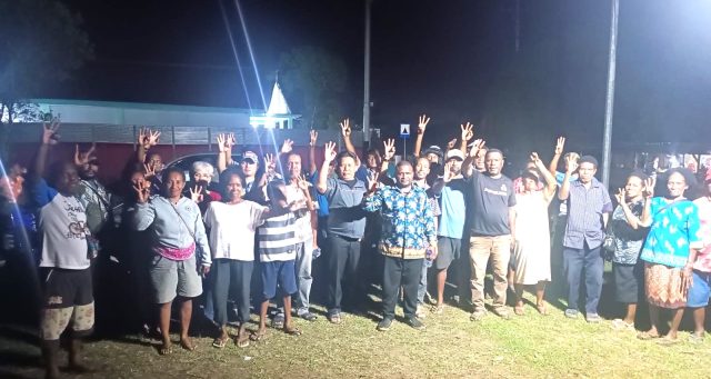 Dilanjutkan ke basis massa di Jalan Fery Kelurahan Malawei Distrik Sorong Manoi dan rombongan tim Relawan Elang Sahabat ELKAM PBD menerima hasil yang sama seusai berkoordinasi yakni masyarakat siap untuk menjemput calon gubernur PBD, Elisa Kambu di Kompleks Jalan Feri.