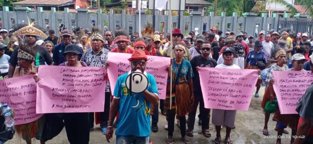 Ratusan massa berteriak, mendesak Ketua MRP dan jajarannya menemui pendemo. Massa mengancam akan mendirikan tenda selama berhari-hari hingga aspirasi dijawab.