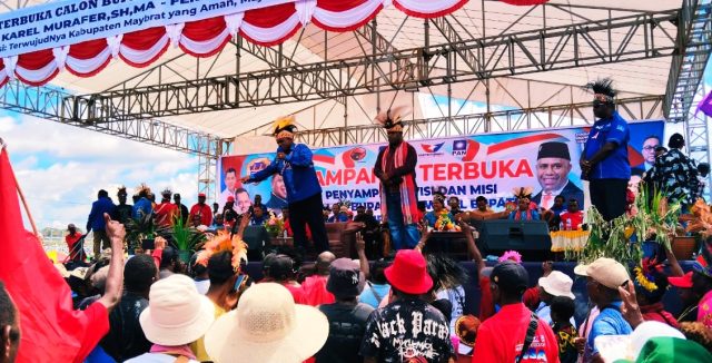 MAYBRAT, – Pasangan Calon bupati dan Wakil bupati Kabupaten Maybrat, Karel Murafer dan Ferdinando Solossa atau dikenal dengan MUSA bersama partai pengusung pada Pemilukada serentak 2024 melaksanakan kampanye terbuka di Alun-Alun Vaitmayaf dibanjiri ribuan pendukung dan simpatisan, Sabtu (16/11/2024).