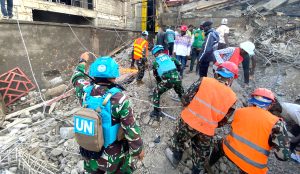 Pasukan satgas BGC 39-F Monusco yang berada di Ndromo Super Camp segera membentuk tim evakuasi dan langsung melaksanakan operasi pencarian dan penyelamatan terhadap korban yang tertimpa reruntuhan.
