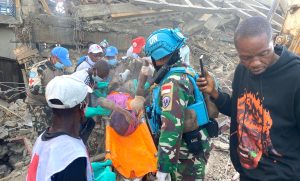 BUNIA, mediabetewnews.com – Pasukan Satgas BGC 39-F MONUSCO bergerak cepat sebagai tim pertama yang merespons insiden runtuhnya bangunan hotel 3 lantai yang masih sedang dalam tahap pembangunan di wilayah Bankoko, Komune Mbunya, sekitar 1,5 kilometer dari pusat Kota Bunia Kongo, Kamis (22/5/2025).