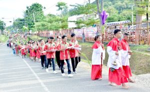 Lanjut Tahoba, ibadah perarakan Daun Palma mulai dari SD YPPK Santa Sisilia KMS, melintasi Jln. Brawijaya dan berakhir di Gereja Katolik Santo Agustinus Manokwari.