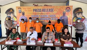 KOTA SORONG, mediabetewnews.com – Polres Sorong Kota melaksanakan Release Akhir Tahun situasi wilayah dan penanganan tindak pidana serta pencapaian yang diperoleh selama 1 tahun dilanjutkan dengan pemusnahan barang bukti yang dilaksanakan di Lobby Mapolres Sorong Kota pada Sabtu (31/12).