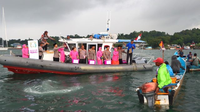 Kota Sorong, mediabetewnews.com – Jajaran Polresta Sorong Kota dan Bhayangkari Cabang Kota Sorong membagikan 300 bungkus takjil kepada nelayan dan anak-anak yang ada di pulau Doom.