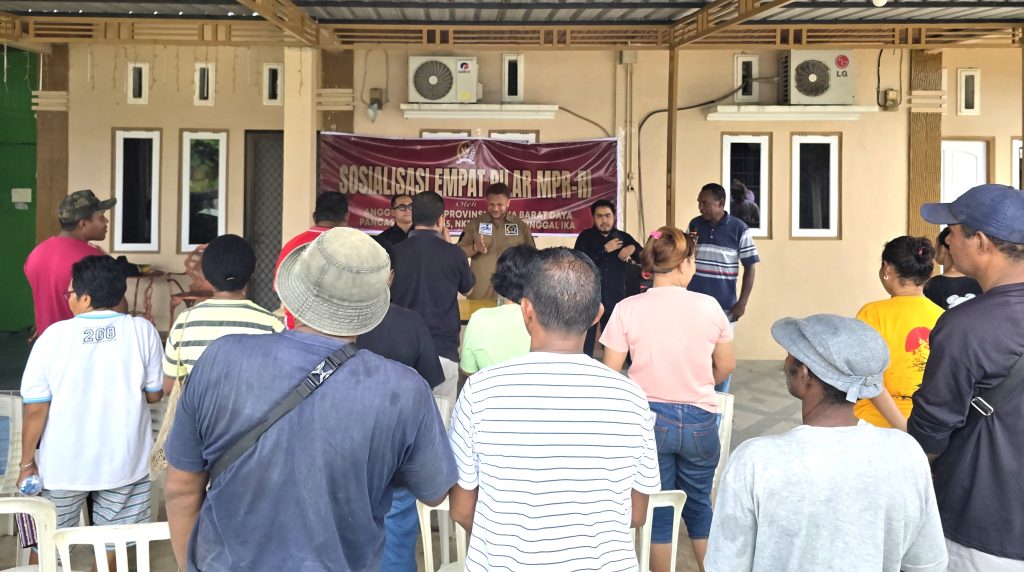 Sosialisasi 4 Pilar Kebangsaan kali ini dilaksanakan disalah satu runah warga di jalan Pendidikan Km 8 Kelurahan Malaingkedi (depan Universitas Muhammadiah Sorong) Kota Sorong, Provinsi Papua Barat Daya, Selasa (29/7/2025).