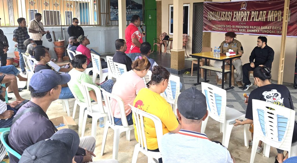SORONG, mediabetewnews.com – Guna meningkatkan rasa cinta terhadap Negara Kesatuan Republik Indonesia (NKRI) kepada masyarakat di Provinsi Papua Barat Daya terlebih khusus warga Kota Sorong, Senator Paul Finsen Mayor (PFM) menggelar Sosialisasi 4 Pilar Kebangsaan bagi masyarakat dari berbagai kalangan di basis massanya.
