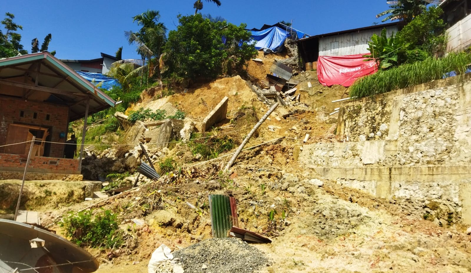 Pantauan media ini, kondisi akibat tanah longsor cukup miris bila dilihat secara langsung dengan mata kepala. Bila hujan lebat turun, kemungkinan rumah tersebut akan tanah longsor. (**)
